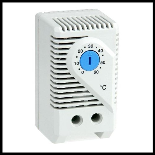 Termostat do montażu w szafach rack, załączający obwód po przekroczeniu ustalonej temperatury.