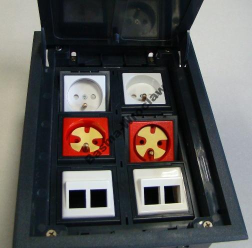 Daje możliwość integracji gniazd logicznych miedzianych kategorii 5e i 6, UTP i STP z siecią elektryczną w jednym punkcie.