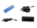Zasilanie: jeden wymienny akumulator typu 18650 3,7V 5800mAh Li-Ion, lub za pomocą przejściówki baterie AAA co umożliwia pracę od 4 do 8 godzin.