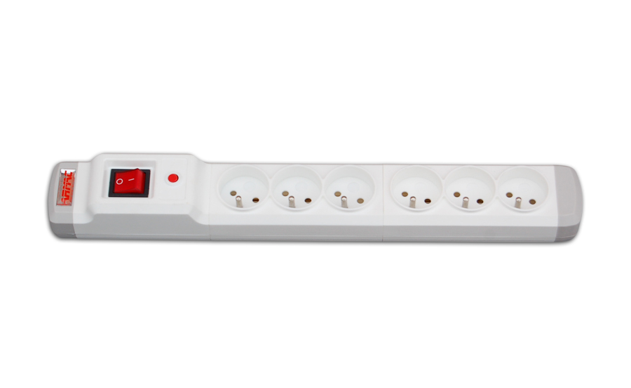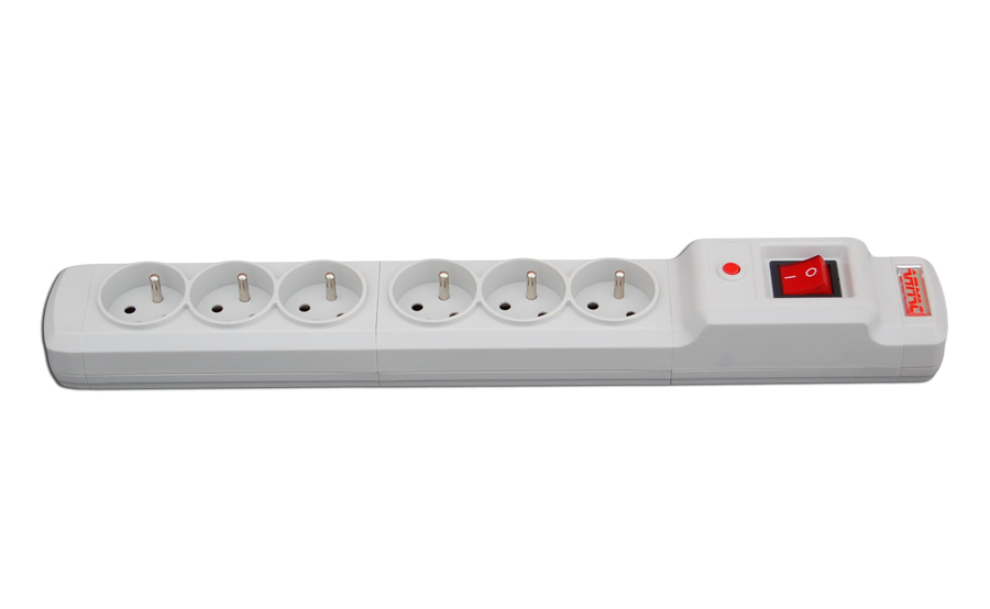 - 6 gniazd ze stykiem ochronnym (10A/250V)