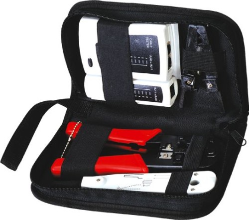 Zestaw narzędzi instalatorskich (tester, nóż LSA, zaciskarka, stripper)