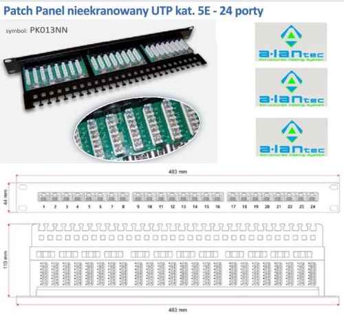 Patch panel UTP 24 porty LSA kat.5e z półką ALANTEC, objęty jest pełną gwarancją systemową 25 lat