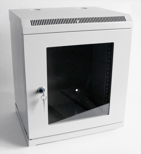 10" szafka wisząca 9U 300mm drzwi szklane RAL7035