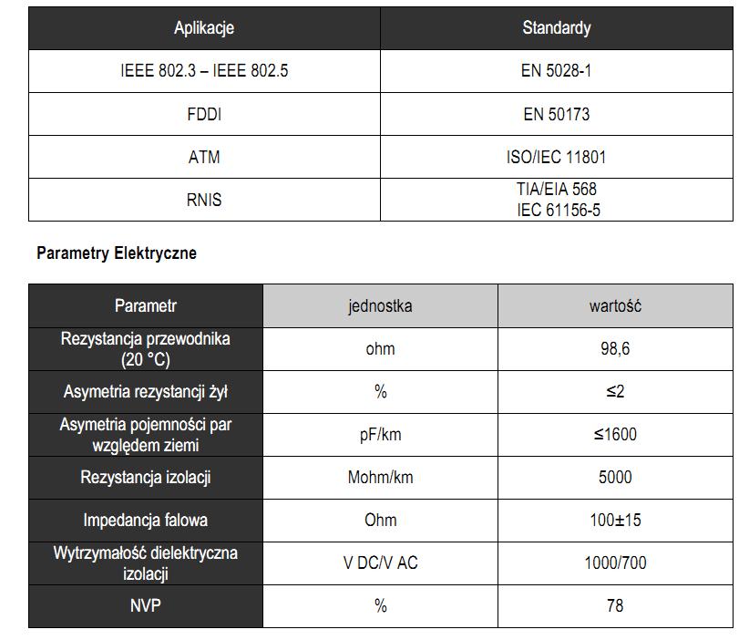 500 i 1000 metrów (szpula). Wersja LSOH posiada dodatek charakteryzujący się
