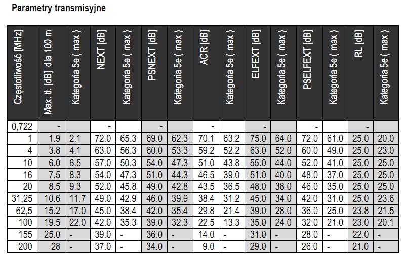 spełniającej wymogi kategorii 5e. Kabel charakteryzuje się doskonałymi